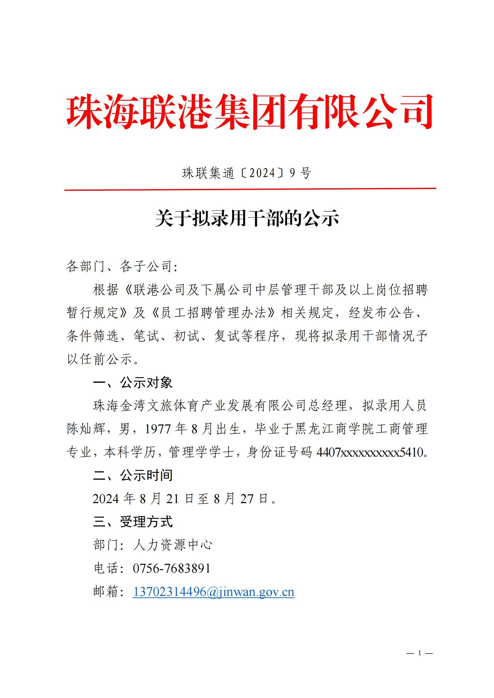 珠聯(lián)集通〔2024〕9號 關(guān)于擬錄用干部的公示