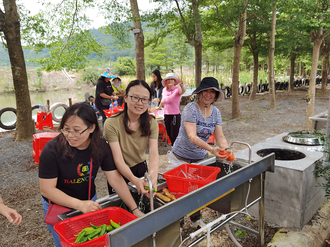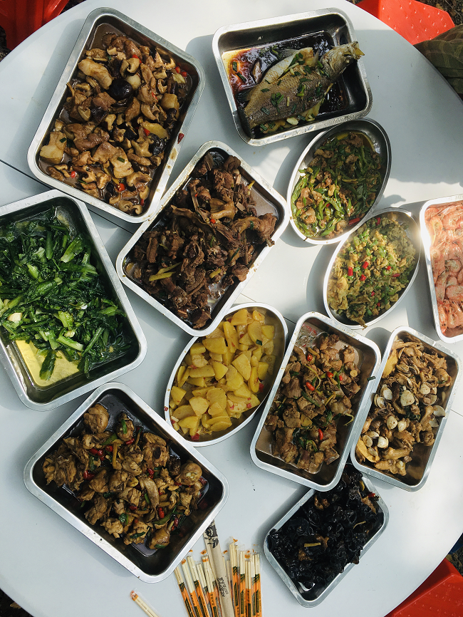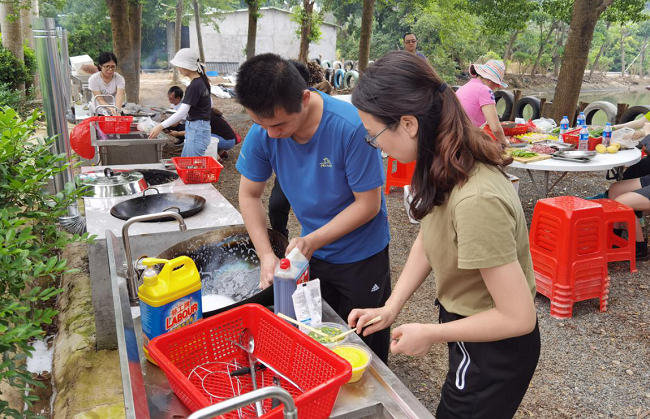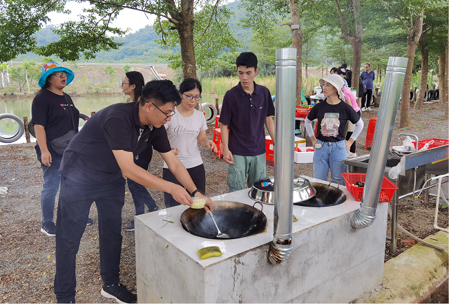 活動結束后,大家來到燒烤、野餐場地,有的生火、有的配調料,洗菜、炒菜、燒烤,忙得不亦樂乎。沒過多久,一道道香噴噴的美食就擺在了眾人面前,整個野炊燒烤現場洋溢著歡聲笑語,其樂融融,大家庭的氛圍濃重、愜意。