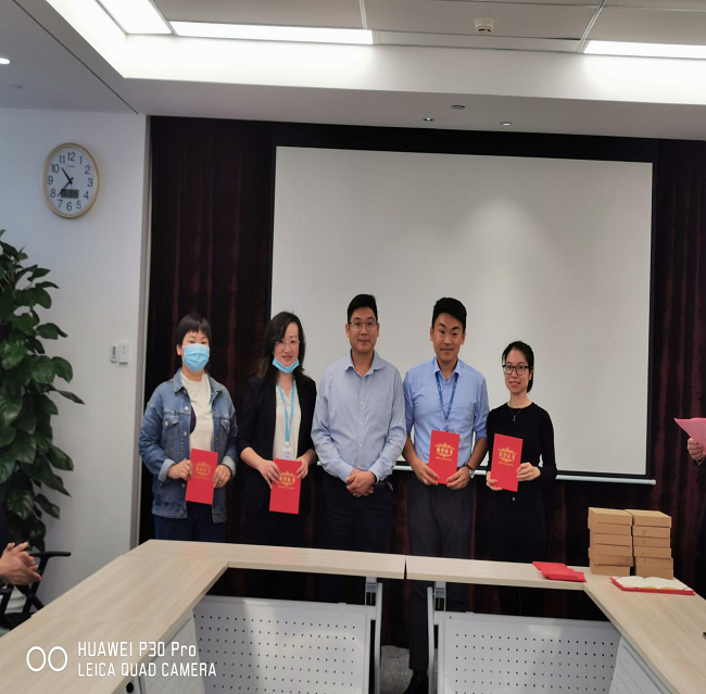 公司董事長(zhǎng)給獲獎(jiǎng)作者頒發(fā)榮譽(yù)證書(shū)和獎(jiǎng)品