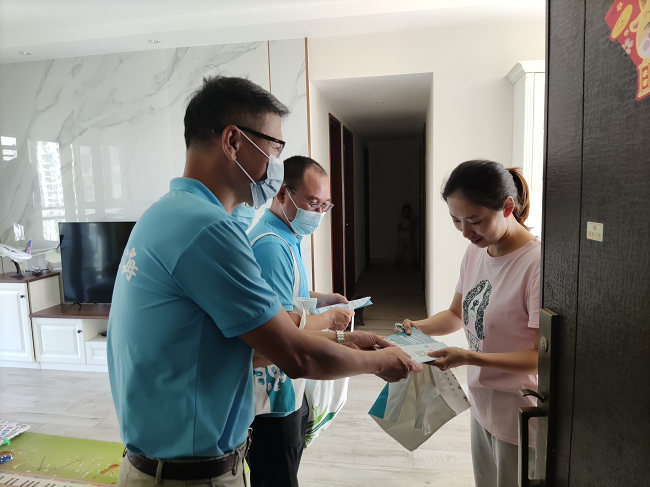 活動現(xiàn)場,所有入戶人員分成三組,高欄分局一組、區(qū)城鄉(xiāng)生活垃圾分類辦和政策法規(guī)科一組、金灣分局和聯(lián)港公司分為一組,走進(jìn)中珠左岸嵐庭小區(qū),采取挨家挨戶上門宣傳的形式,向小區(qū)居民宣講生活垃圾分類類別、投放方式、各類垃圾的處理方式、綠色出行、保護(hù)野生動植物等環(huán)保生活知識,并借助有獎競猜的互動環(huán)節(jié)發(fā)放垃圾分類袋、環(huán)保手提袋、雨傘等小禮品。