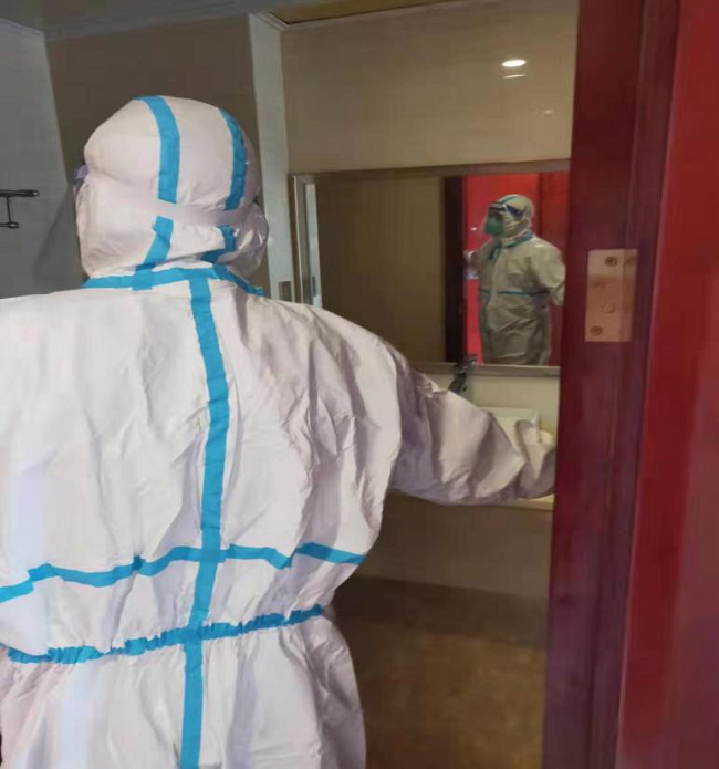 董事長詳細(xì)詢問了隔離酒店有關(guān)防疫措施、安保管理、醫(yī)療保障等情況,查閱了駐點(diǎn)工作臺(tái)賬,現(xiàn)場(chǎng)提出了防疫工作還需改善的事項(xiàng),要求盡快完善防疫設(shè)施、設(shè)備配套工作,部分醫(yī)學(xué)觀察區(qū)間要及時(shí)增加空調(diào),室內(nèi)外區(qū)域要加強(qiáng)消毒、消殺管理。