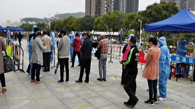 1月16-18日,全市“三天三檢”全面啟動。疫情就是命令,防控就是責(zé)任,聯(lián)港公司在區(qū)委區(qū)政府統(tǒng)籌指揮下,上下聯(lián)動、迅速響應(yīng)、主動應(yīng)戰(zhàn),織就了一張逾六百人的志愿服務(wù)隊伍網(wǎng),深入到航空新城和三灶、紅旗、南水、平沙各鎮(zhèn)、各社區(qū),與社區(qū)干部、核酸檢測隊伍同站一班崗、同守一條線,扛起國企黨員干部職工沉甸甸的責(zé)任和擔當,共筑防疫屏障。