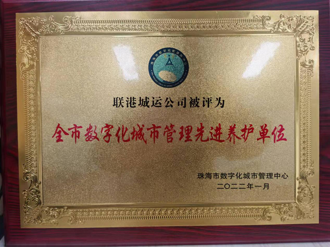 喜報(bào)!聯(lián)港城運(yùn)公司榮獲“2021年度珠海市數(shù)字化城市管理先進(jìn)養(yǎng)護(hù)單位”稱(chēng)號(hào)