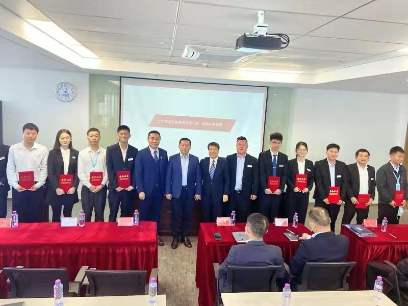 會上,龍總帶領(lǐng)資產(chǎn)公司班子成員為獲得2021年度優(yōu)秀員工、崗位標(biāo)兵和疫情防控先進個人稱號的代表頒發(fā)了榮譽證書,并同他們親切合影留念。