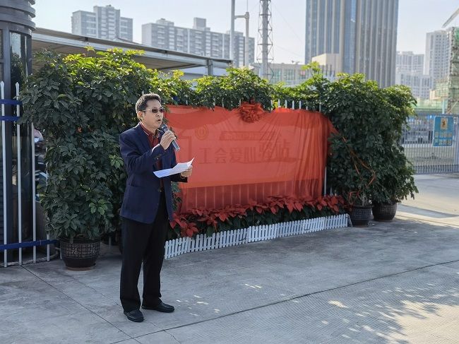 來自聯(lián)港城運綠化部的陳婷作為戶外勞動者代表發(fā)言,愛心驛站的建設(shè)是分享,也是共享,傳遞愛心,傳遞暖意,感謝區(qū)總工會和集團工會為大家創(chuàng)造了如此美好的“暖心之家”,讓他們享受到“熱可納涼、冷可取暖、累可歇腳、渴可飲水”等服務(wù)。